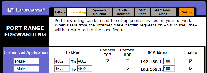 enviar o tráfego de entrada para as portas 4662 e 4672 em